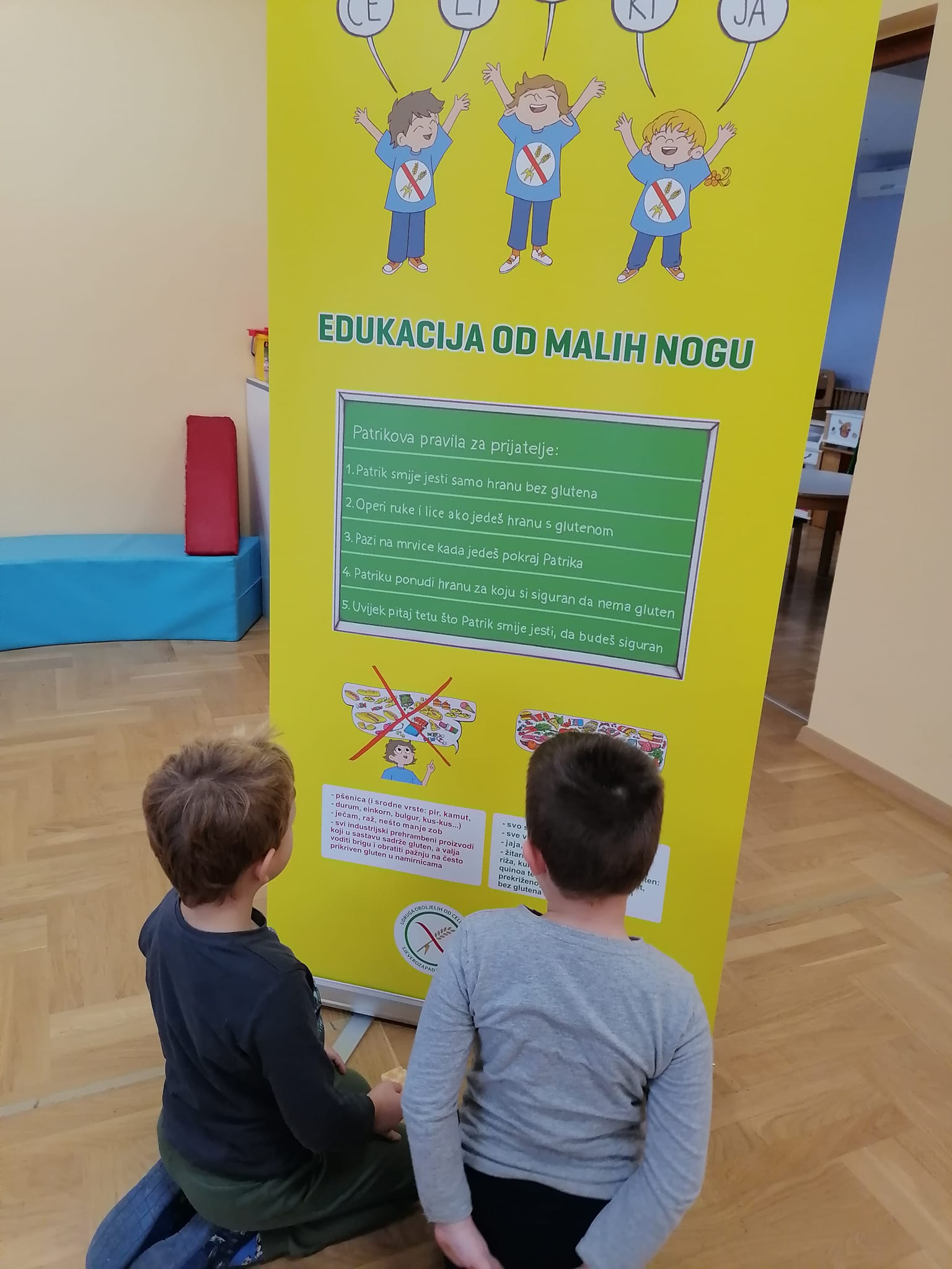 Članice Udruga oboljelih od celijakije Sjeverozapadne Hrvatske održale su edukativnu radionicu o celijkiji i bezglutenskoj prehrani. Čitali smo slikovnicu o celijkiji i bezglutenskoj prehrani Patrik i prijatelji u potrazi za pekarnicom kojom educiramo djecu o različitim pristupima u prehrani bez glutena. Razgovarali smo i o hrani koju volimo jesti. Djeca su imala i bezglutensku zakusku nakon koje su zaključili da hrana bez glutena nije toliko drugačija i ništa manje ukusna od njihove.